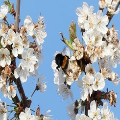 Ackerhummel (Bombus pascuorum) auf Distel (Silybum)